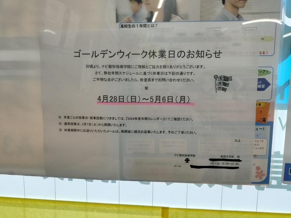 ナビ個別指導学院 島根大学前校 です。