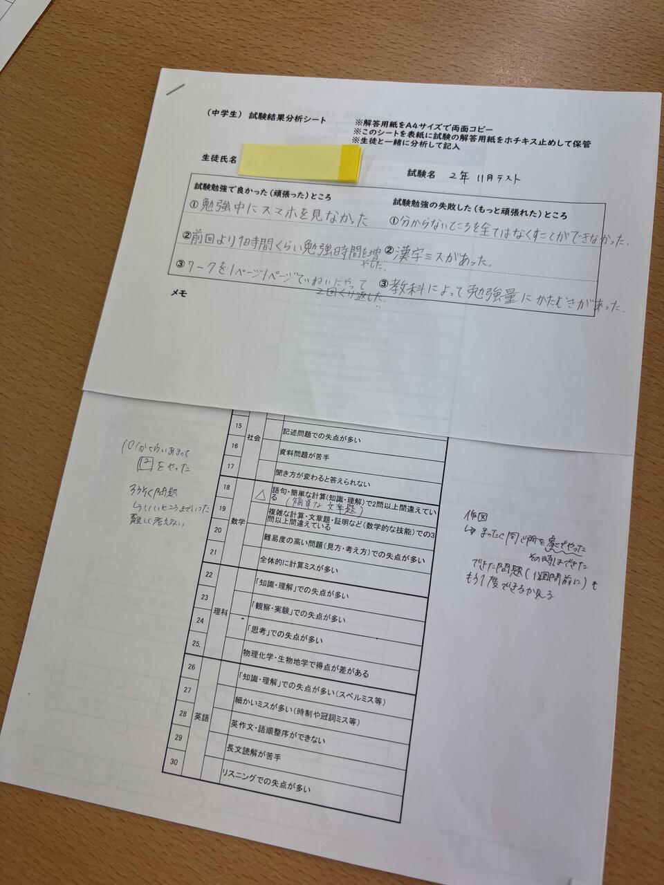 明日以降テストの結果も返ってくるかと思います。