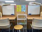 ナビ個別指導学院の授業は、個別の席ごとに設置された自分専用のホワイトボードで解き方や考え方を一緒に確認、それから生徒が問題を解くという「個別授業」スタイルです。