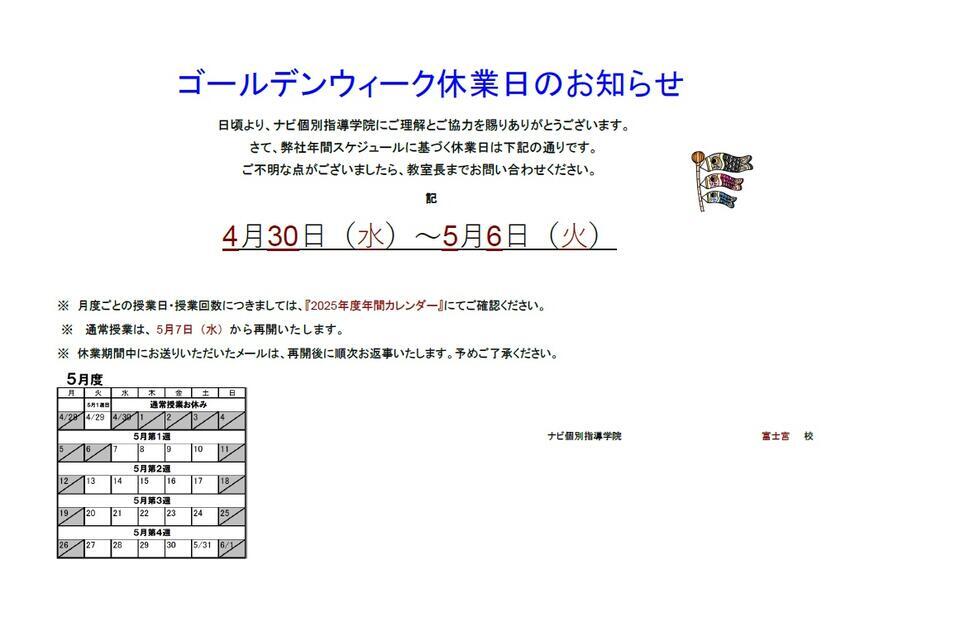 日頃より、ナビ個別指導学院にご理解とご協力を賜りありがとうございます。
