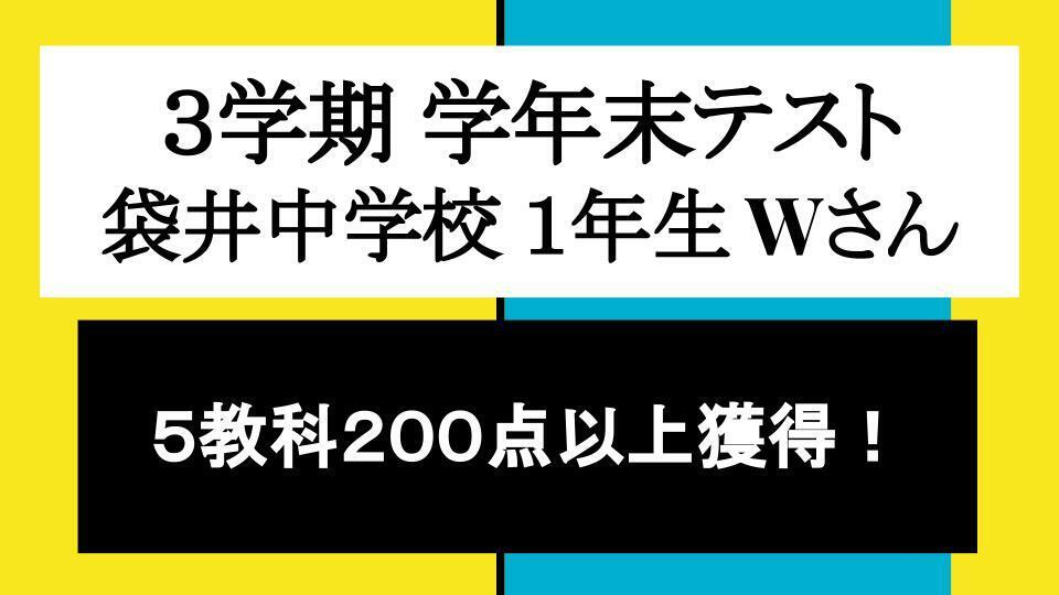 1年生時の学年末テストで5教科合計200点以上達成!!
