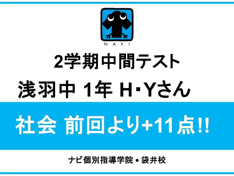 2学期中間テストで社会が前回より11点アップ!!