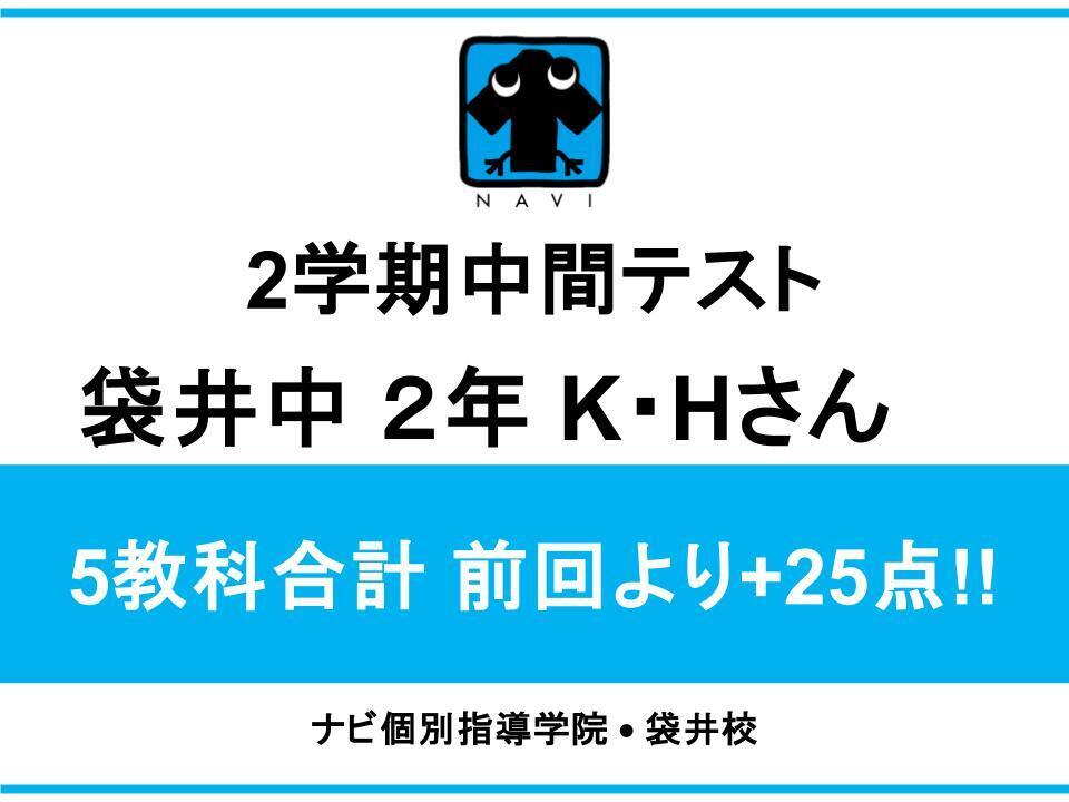 2学期中間テストで入塾前より5教科合計25点アップ!!