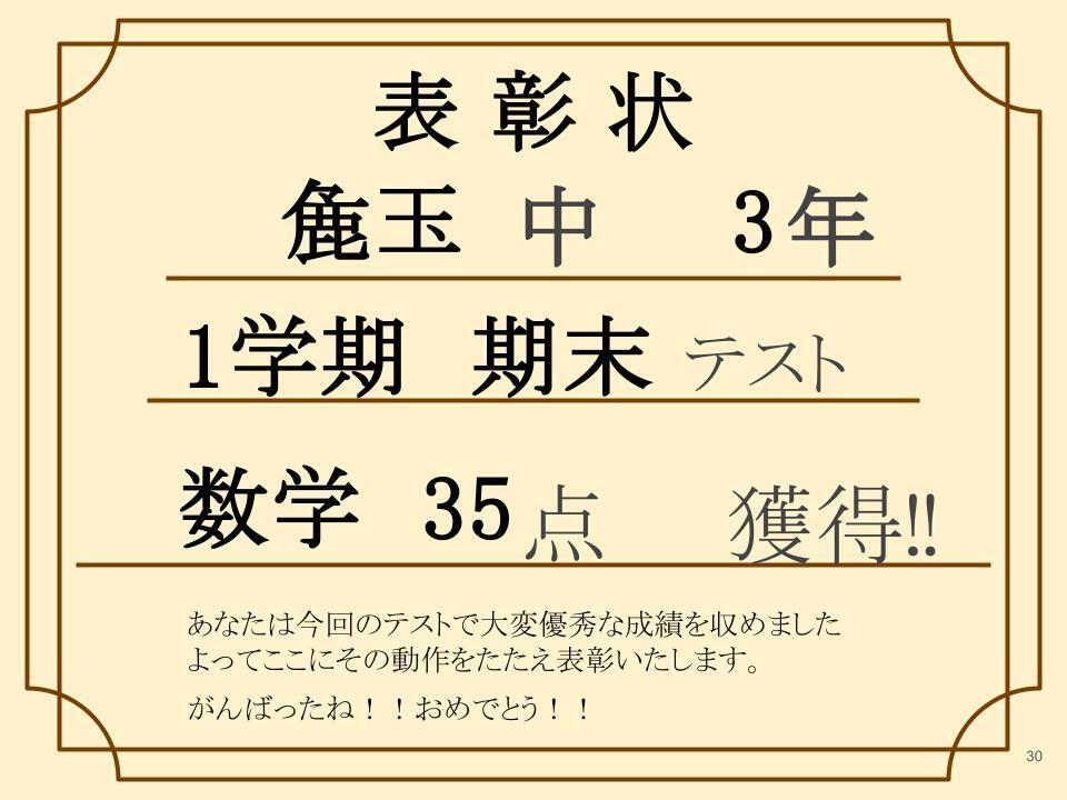 なんと1学期 期末テスト 35点!!(※50点満点)