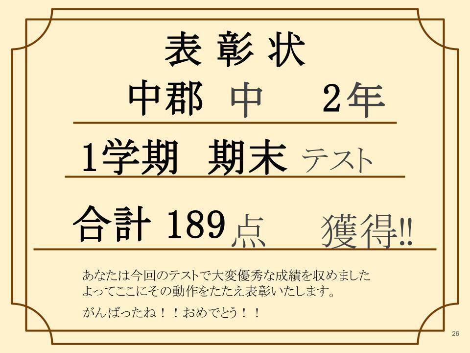 なんと1学期 期末テスト 合計189点!!