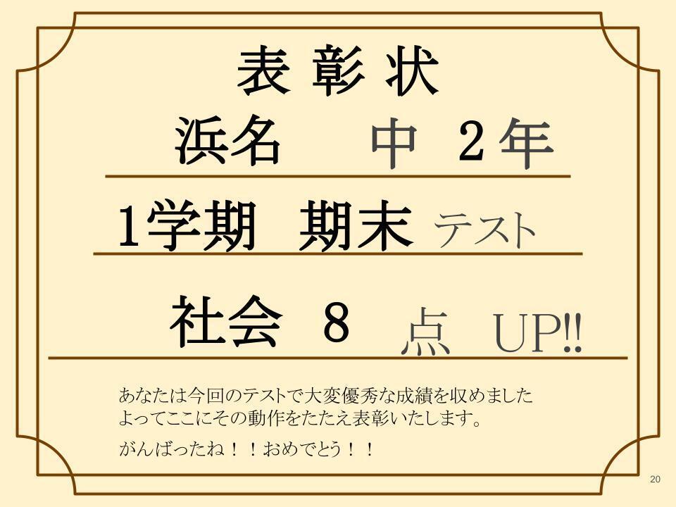 なんと1学期 期末テストで前回よりも社会8 点UP!!(※50点満点)