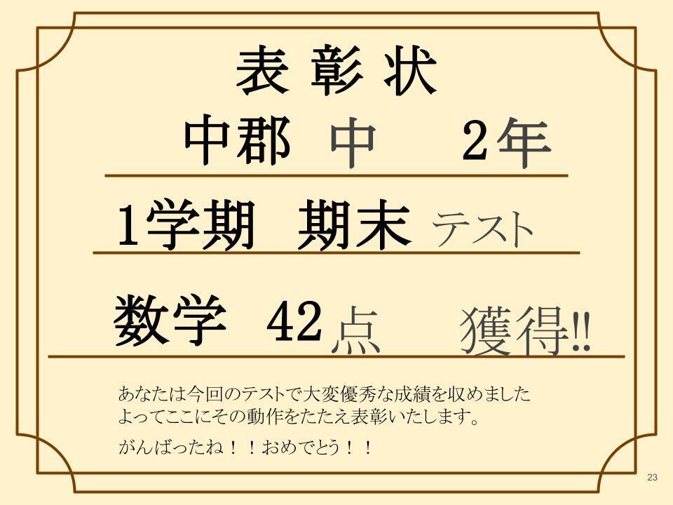 なんと1学期 期末テスト42 点!!(※50点満点)
