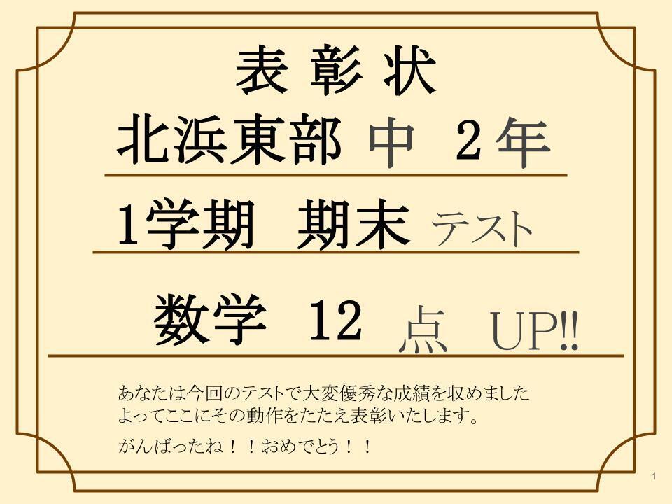 なんと1学期 期末テストで前回よりも 数学12点UP!!(※50点満点)