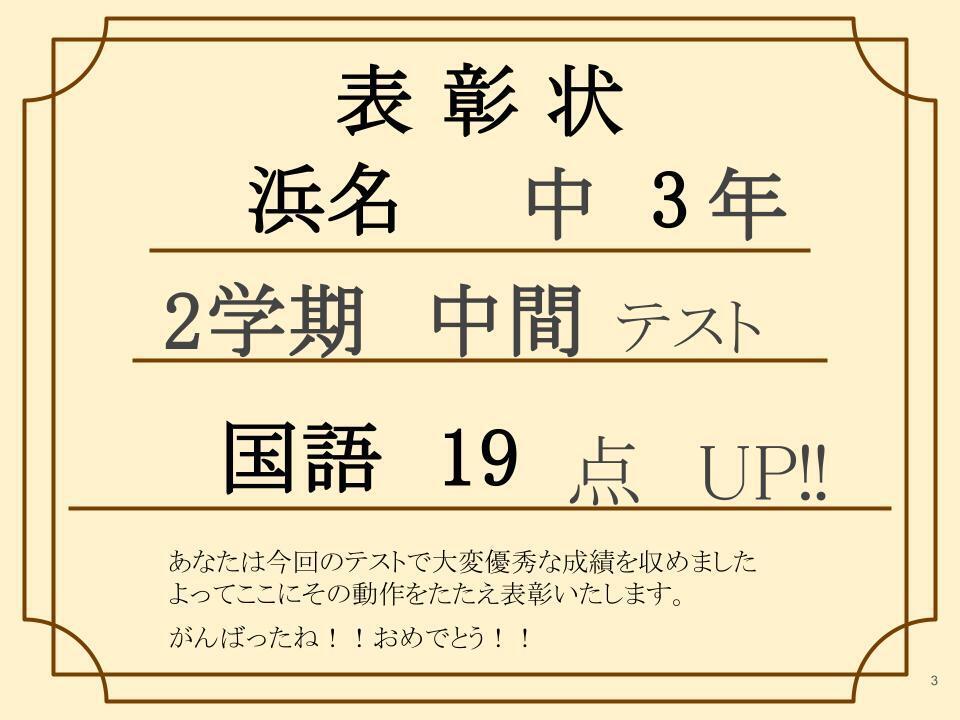 今日ご紹介するのは 浜名中3年です。