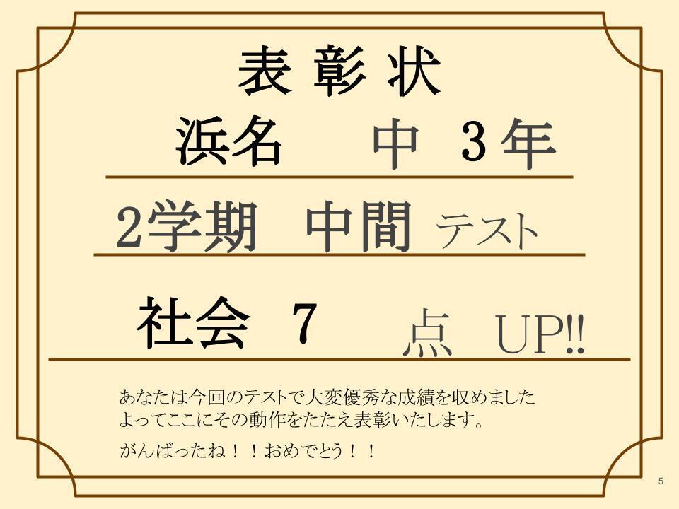 なんと2学期 中間テストで前回よりも 社会7点UP!!(※50点満点)