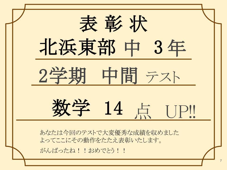 なんと1学期 期末テストで前回よりも 数学14点UP!!(※50点満点)