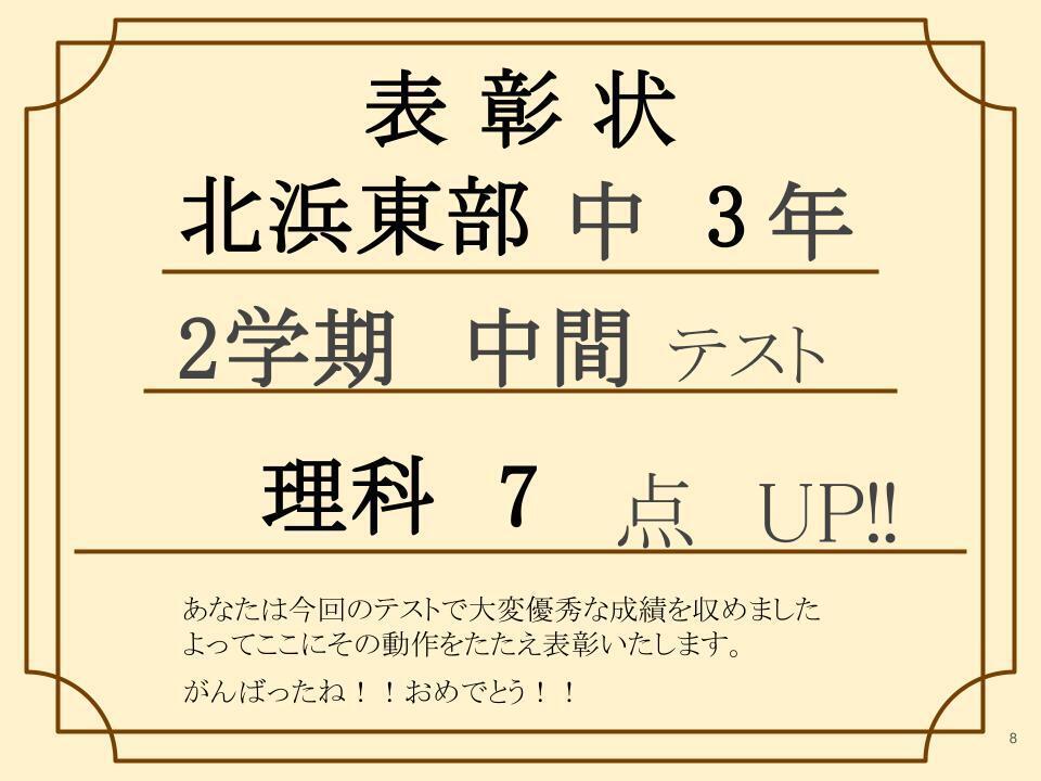 なんと1学期 期末テストで前回よりも理科7 点UP!!(※50点満点)