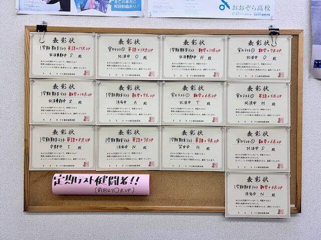 1学期期末テストの点数が前回のテストより上がった生徒がいるので早速掲示物にまとめてみました!(添付写真)