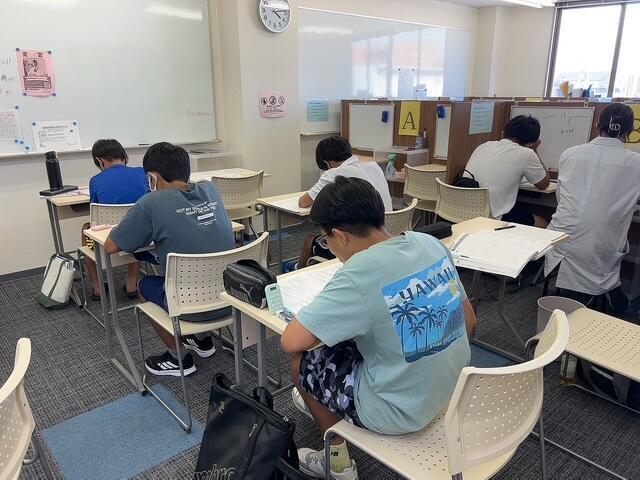 授業がある生徒や塾のテストを受験する生徒、学校の夏季課題を進めに自習する生徒など。