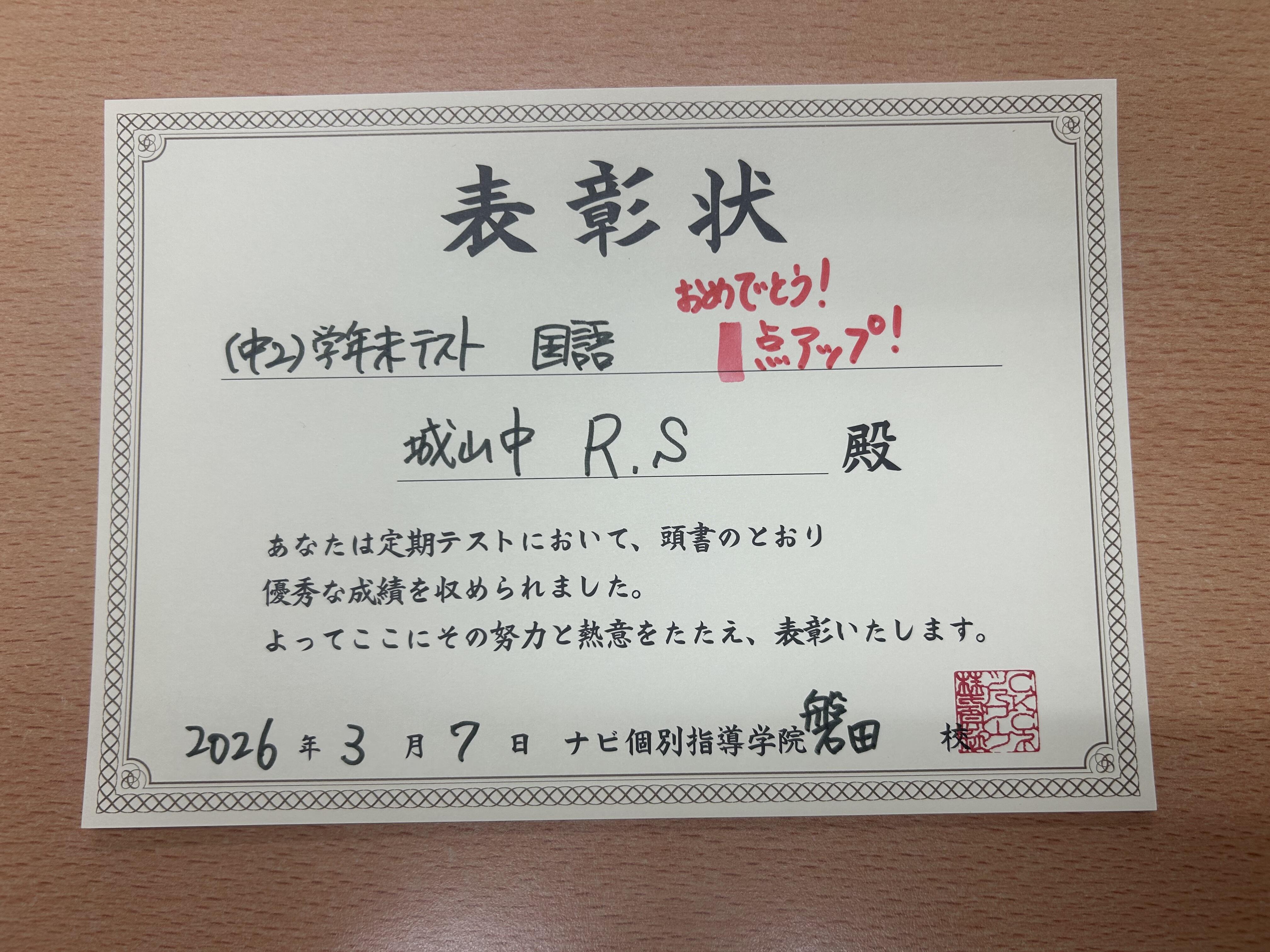 2月に行われた学年末テストの健闘者のご紹介です♪