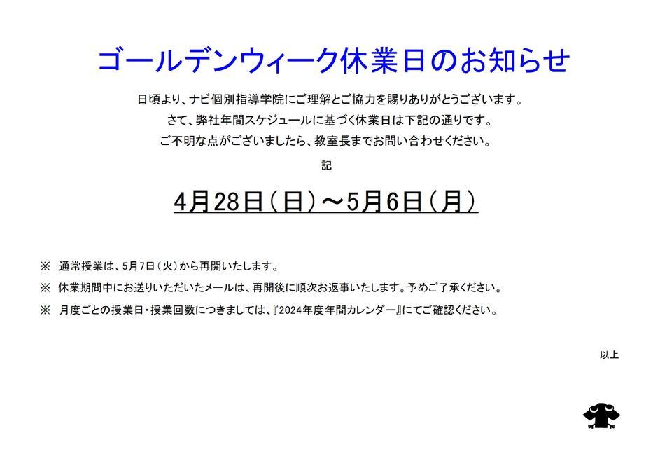 日頃より、ナビ個別指導学院にご理解とご協力を賜りありがとうございます。