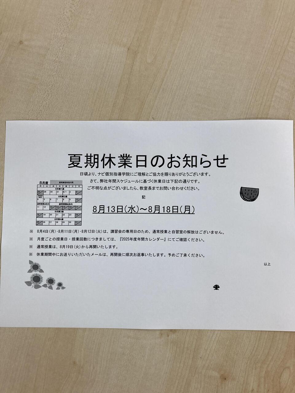 日頃より、ナビ個別指導学院にご理解とご協力を賜りありがとうございます。