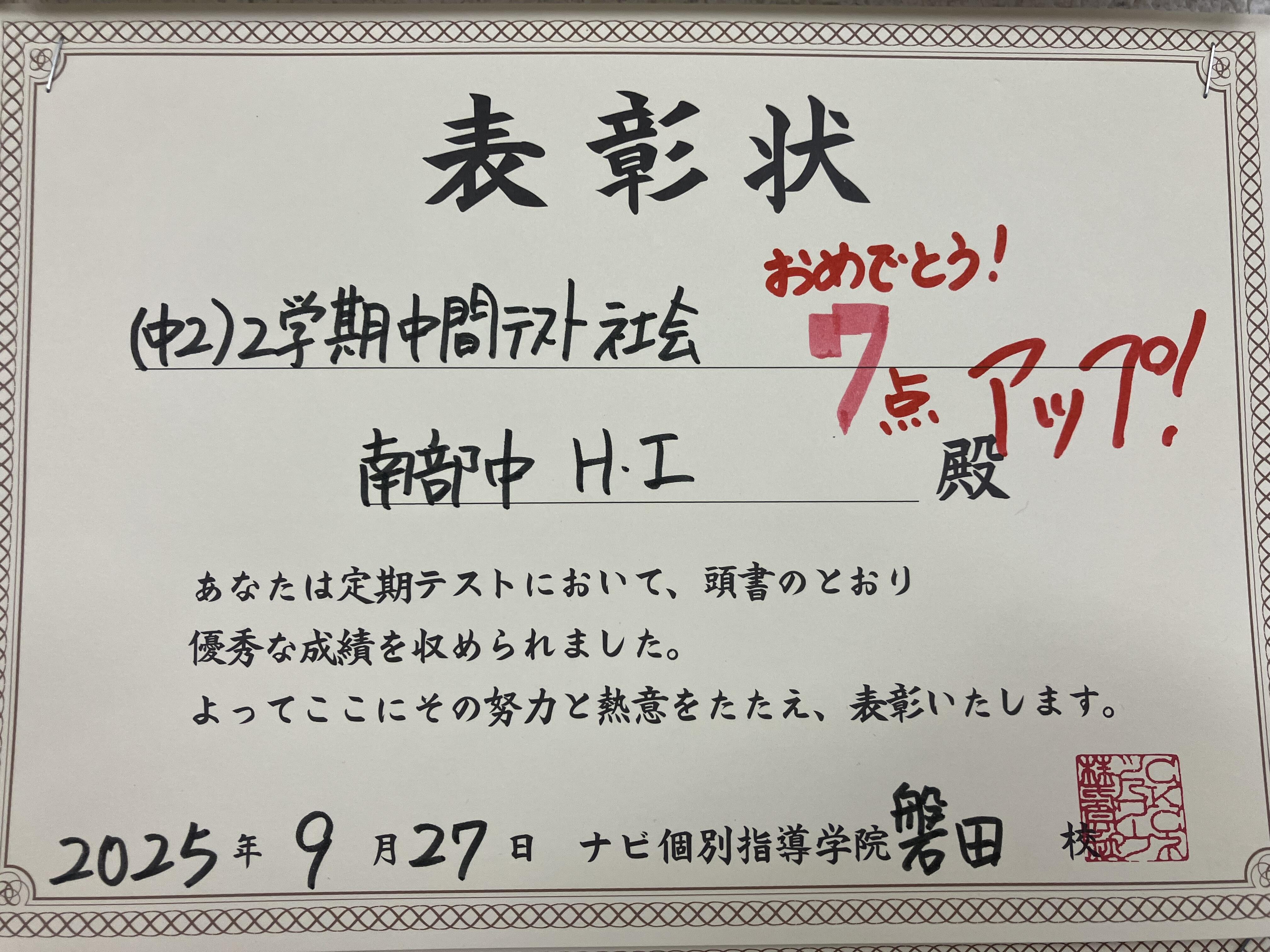 2学期中間テストよく頑張りました、おめでとう!!11月中旬にある2学期期末のテストへ向けて、これからも一緒に頑張りましょう♪