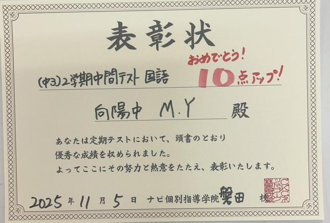 9月に行われた2学期中間テストの健闘者のご紹介です♪