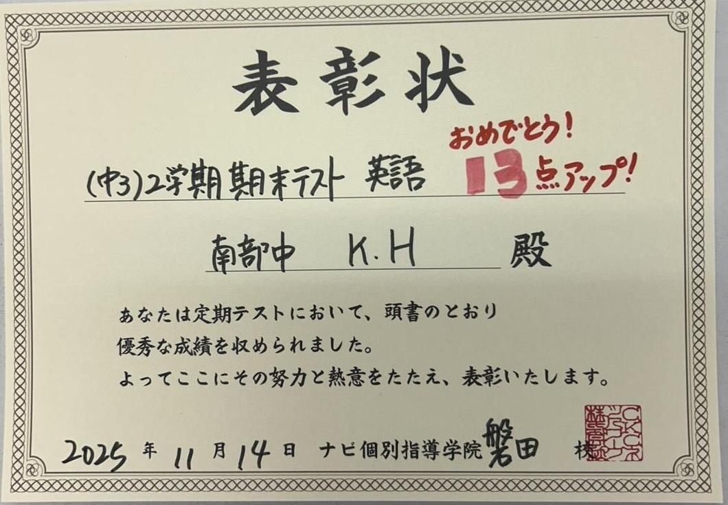 11月に行われた2学期期末テストの健闘者のご紹介です♪