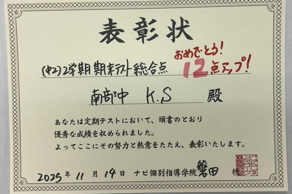 11月に行われた2学期期末テストの健闘者のご紹介です♪