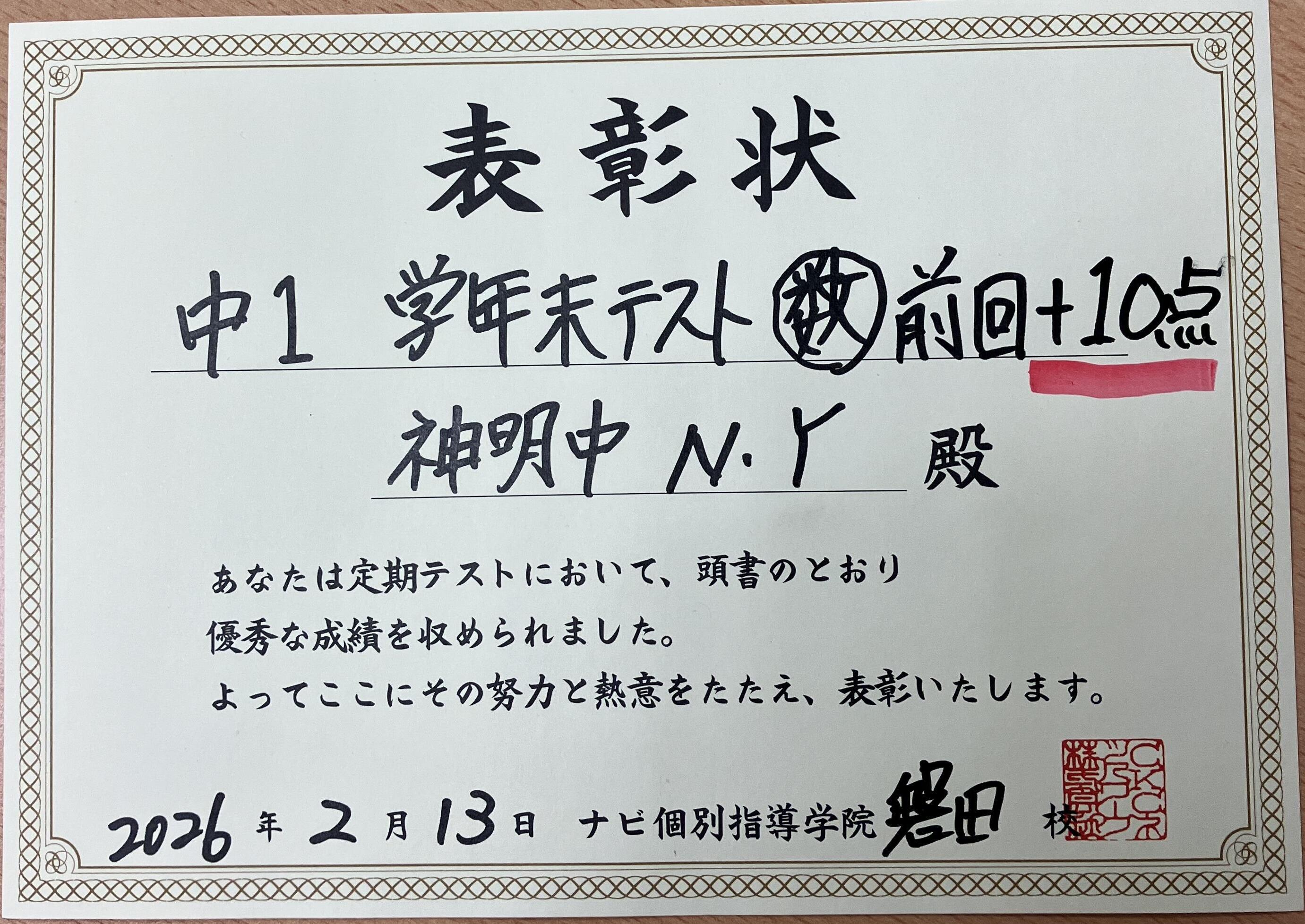 2月に行われた学年末テストの健闘者のご紹介です♪