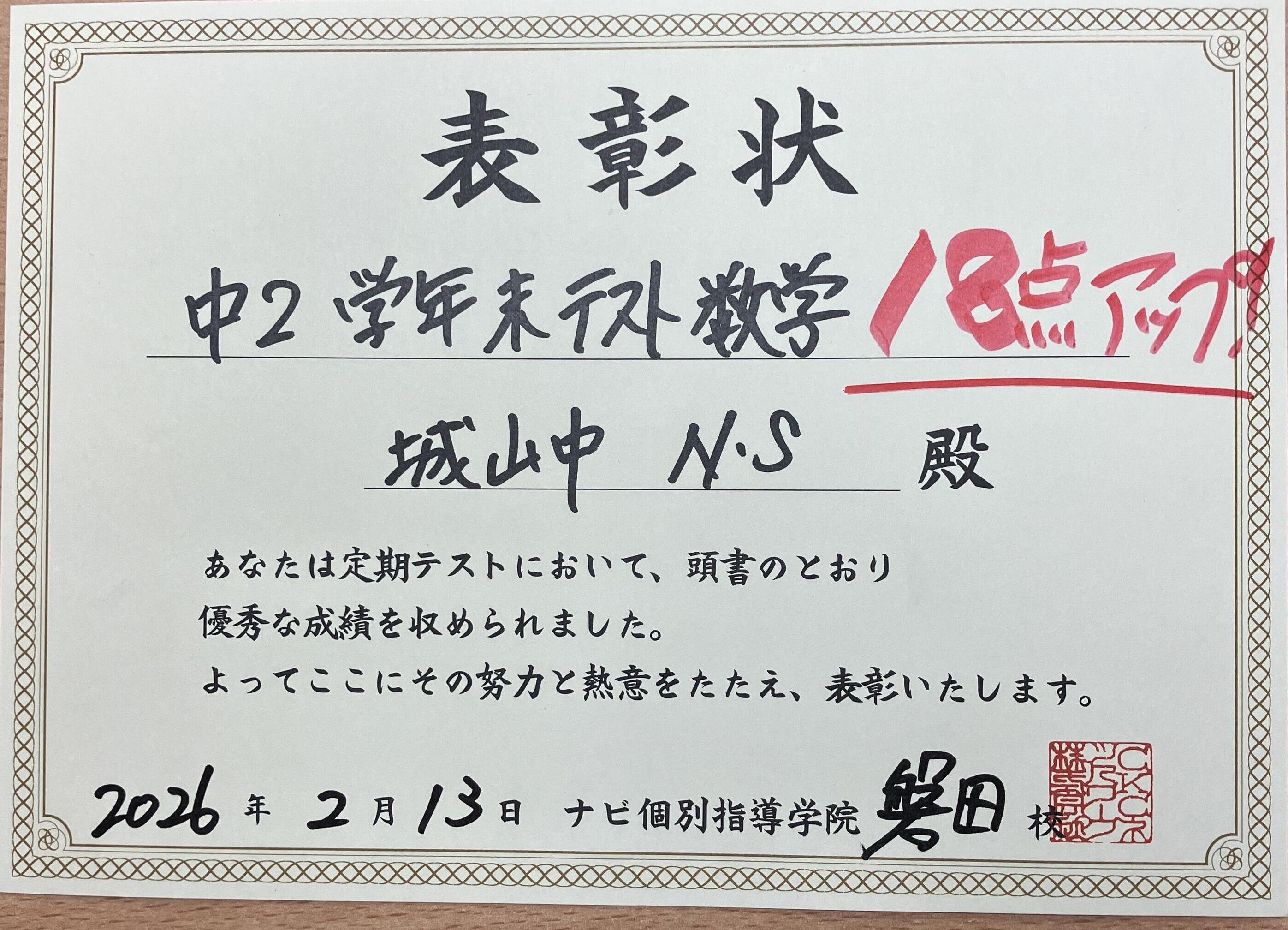 定期テスト健闘者(前回より〇点UP)♪【2/13】