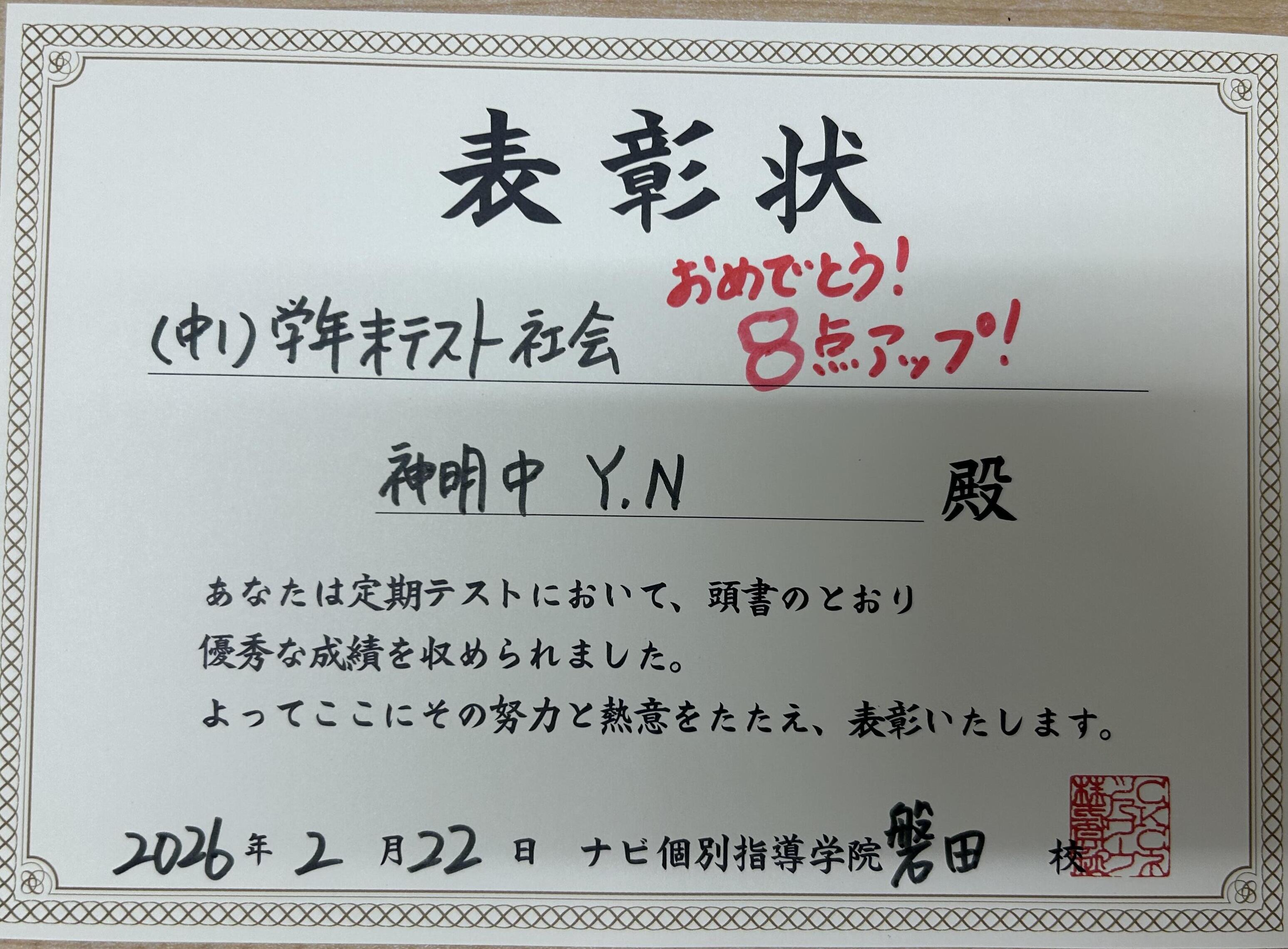 2月に行われた学年末テストの健闘者のご紹介です♪