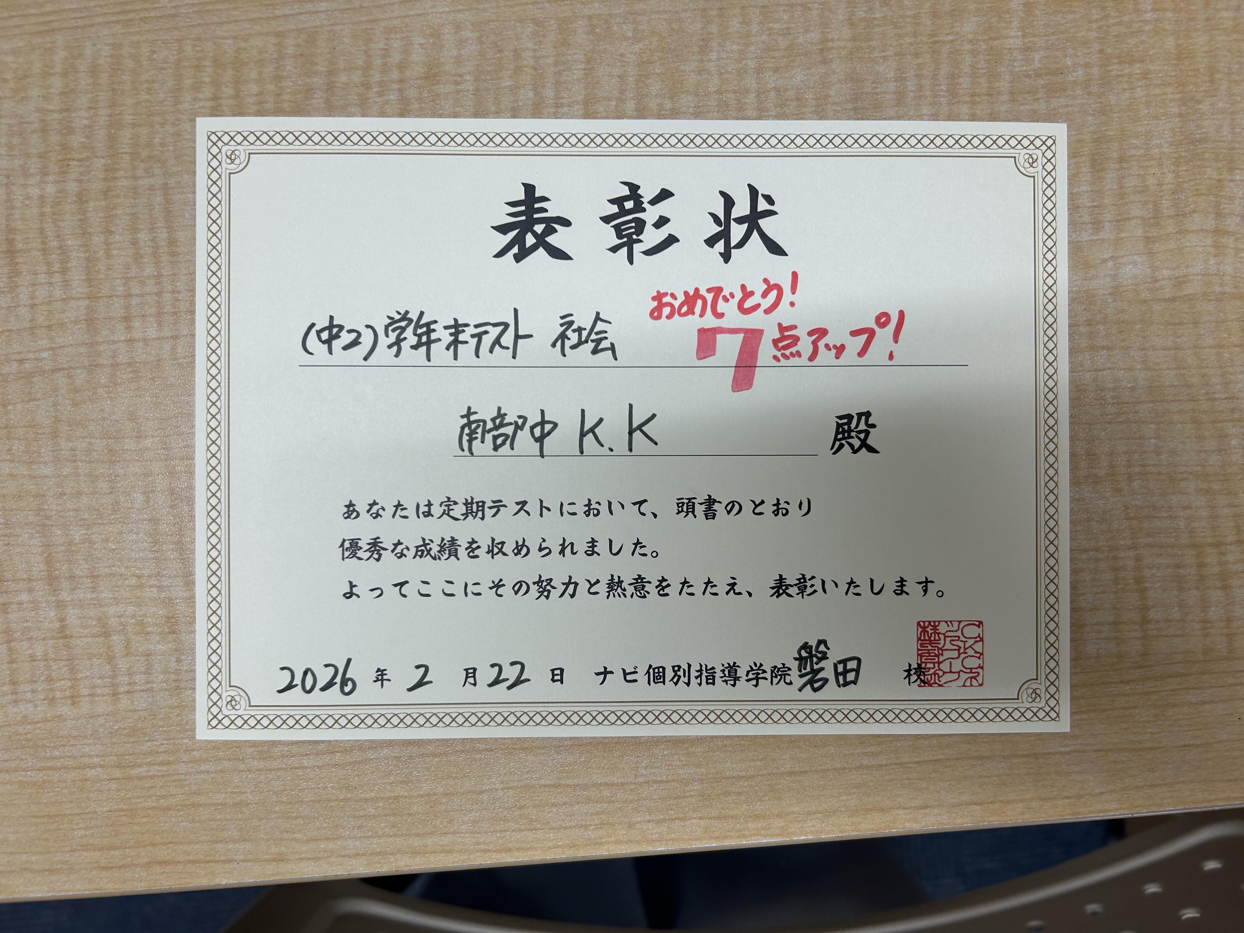 2月に行われた学年末テストの健闘者のご紹介です♪