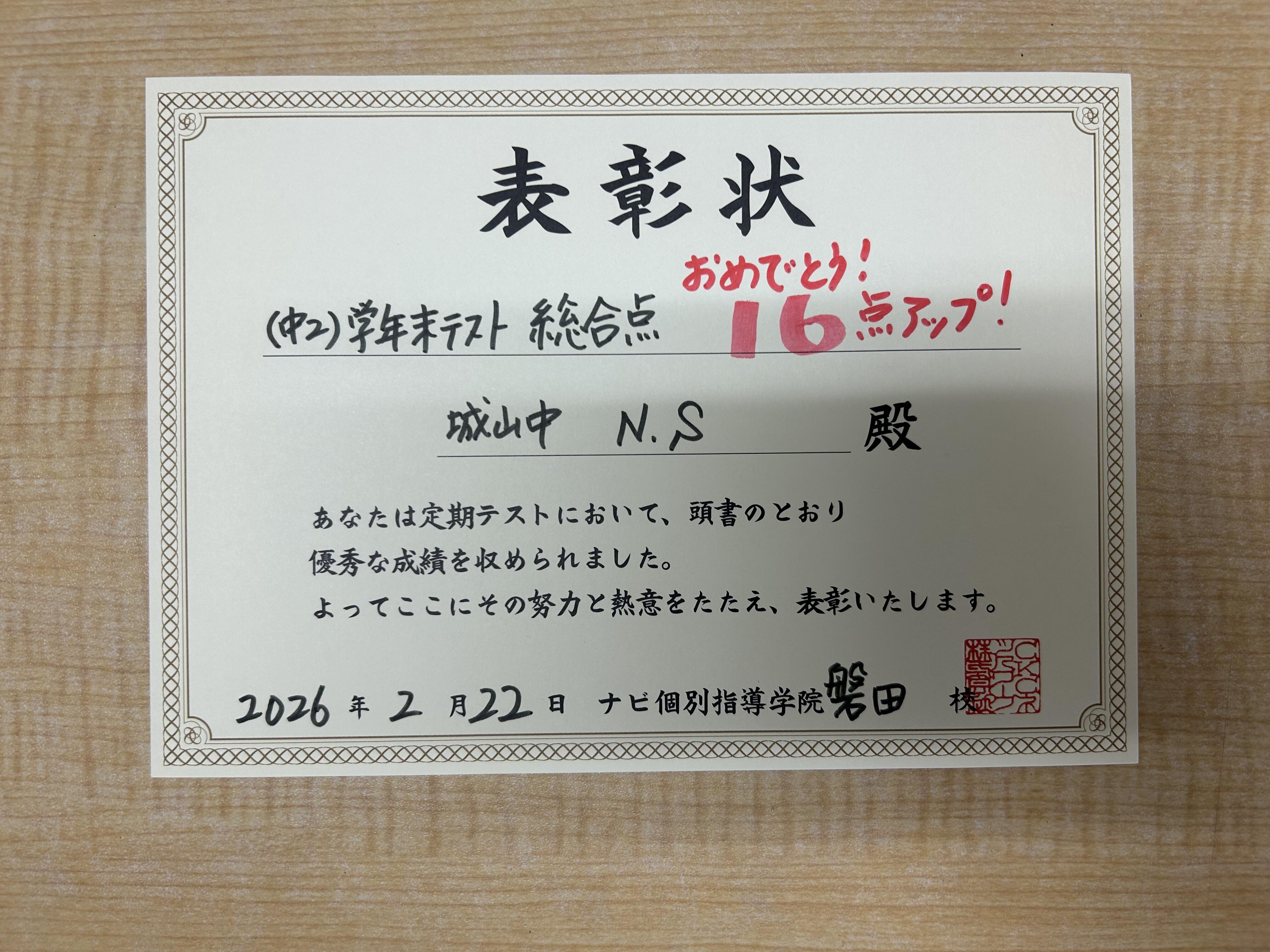 2月に行われた学年末テストの健闘者のご紹介です♪