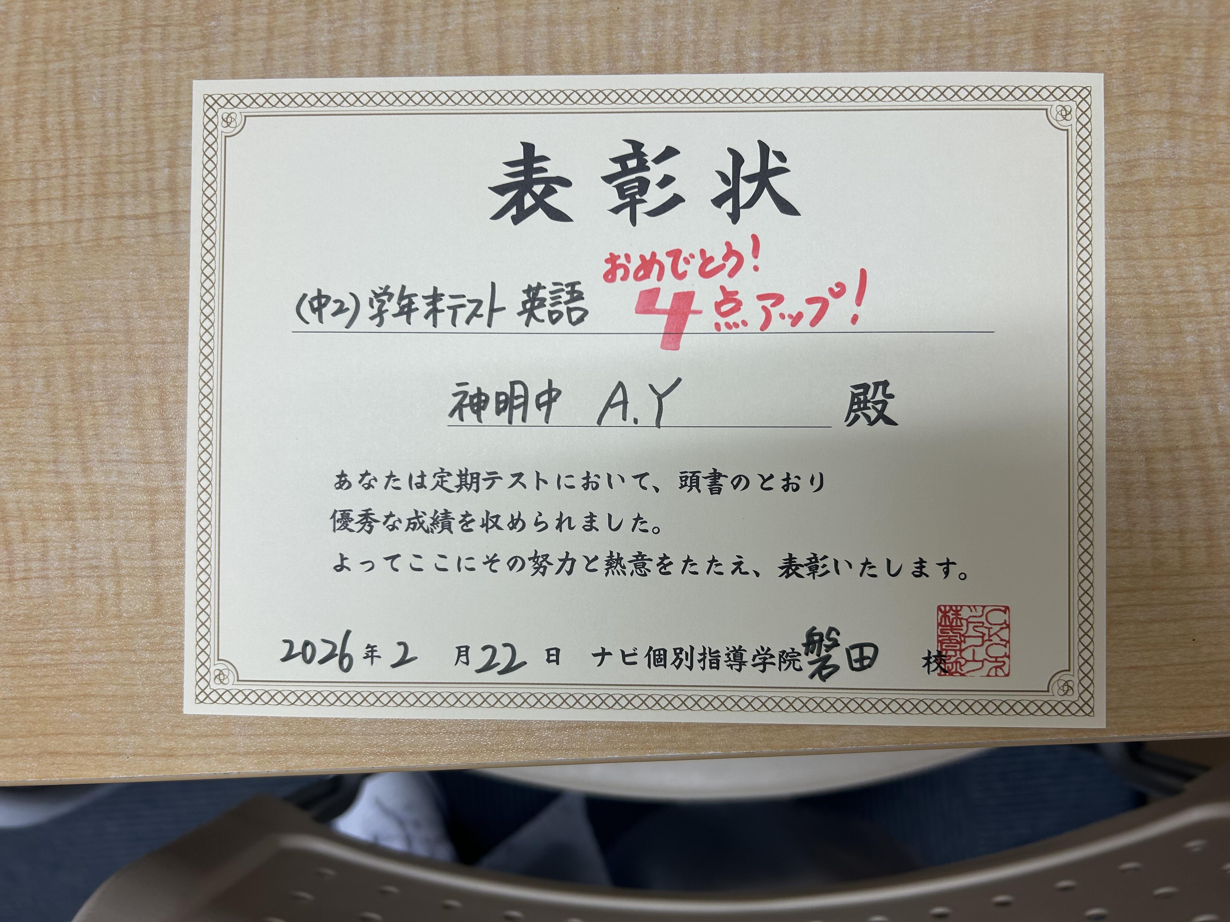 学年末テストよく頑張りました、おめでとう!!