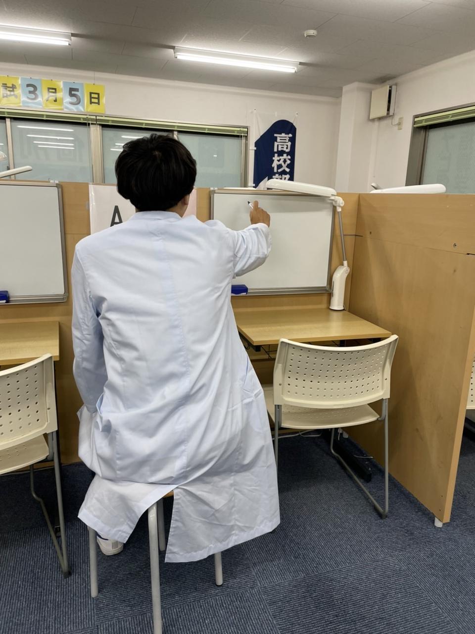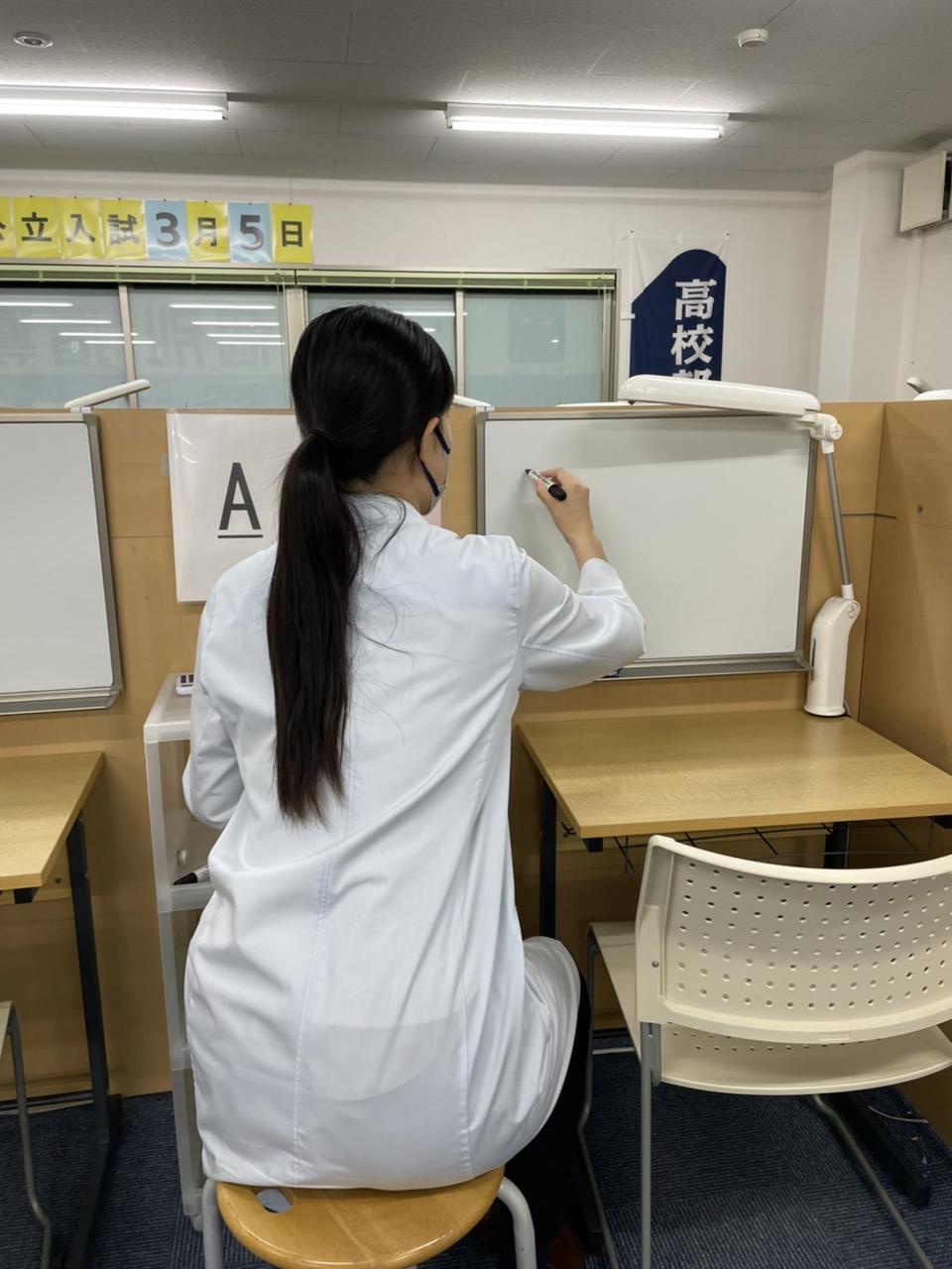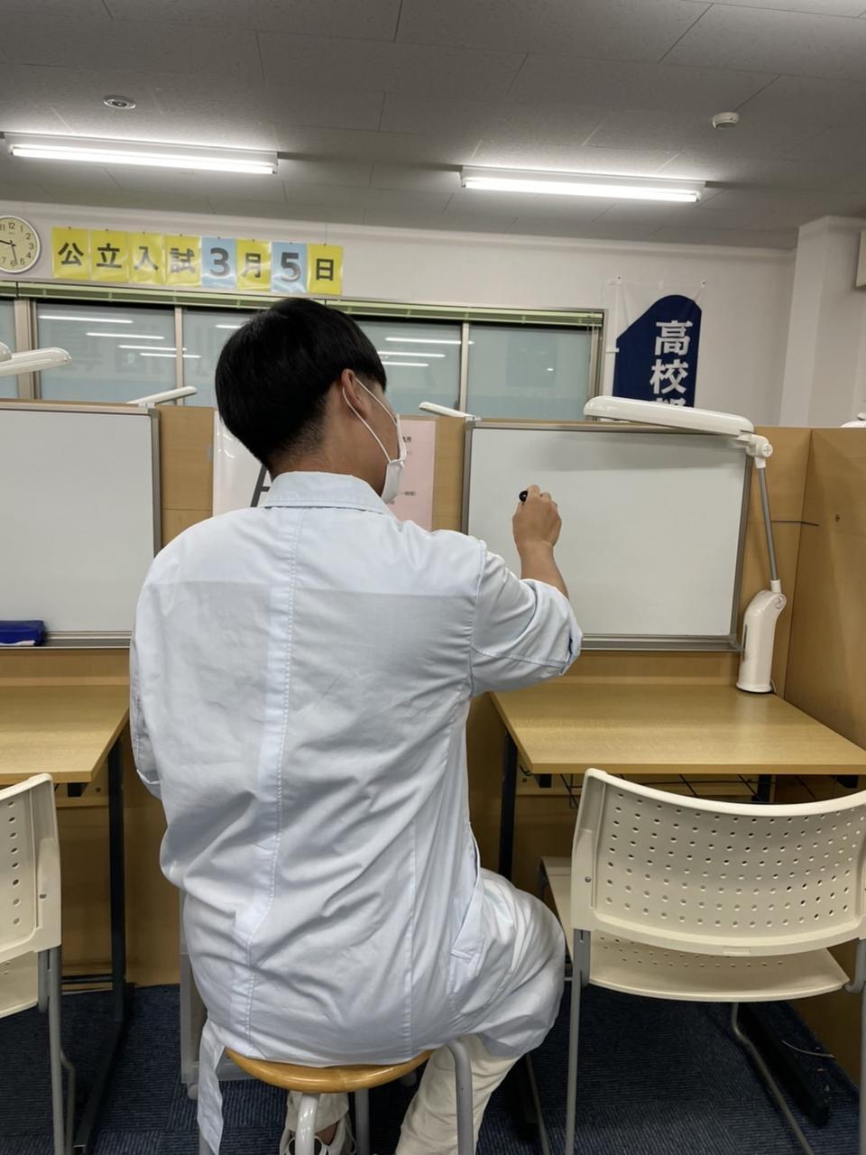 ナビ個別指導学院の授業は、個別の席ごとに設置された自分専用のホワイトボードで解き方や考え方を一緒に確認、それから生徒が問題を解くという「個別授業」スタイルです。