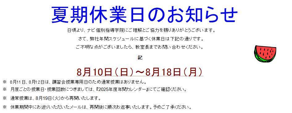 いつも【ナビ個別指導学院 函南校】をご利用いただきまして、誠にありがとうございます。