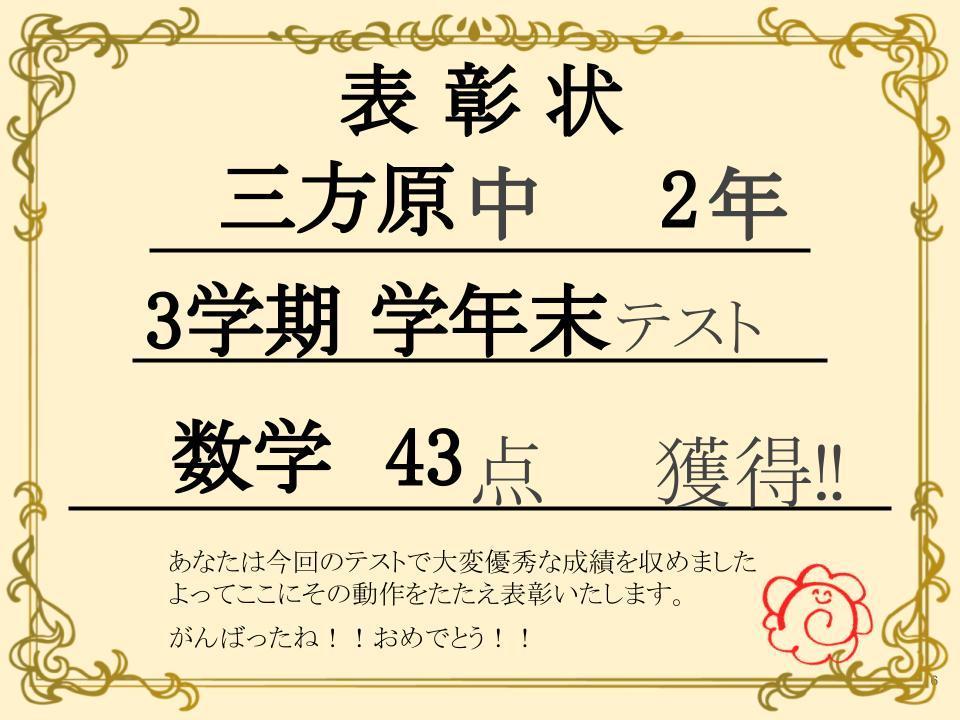 中学生 3学期 学年末テスト 優秀者紹介!!