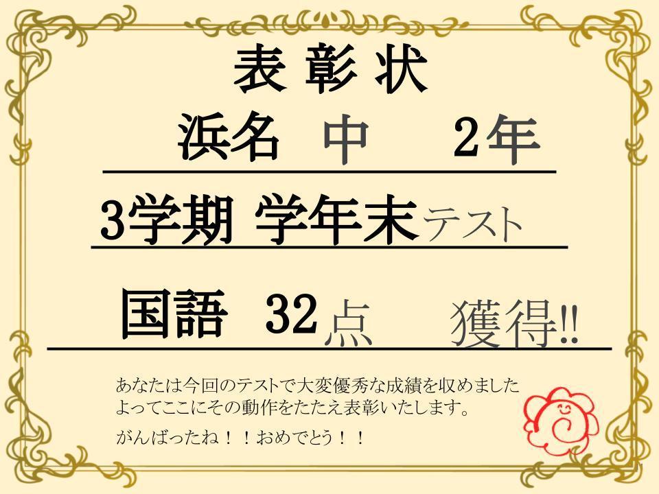 中学生 3学期 学年末テスト 優秀者紹介!!