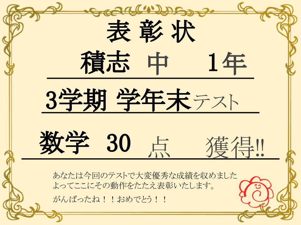 中学生 3学期 学年末テスト 優秀者紹介!!
