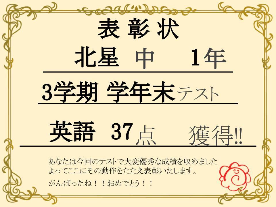 中学生 3学期 学年末テスト 優秀者紹介!!