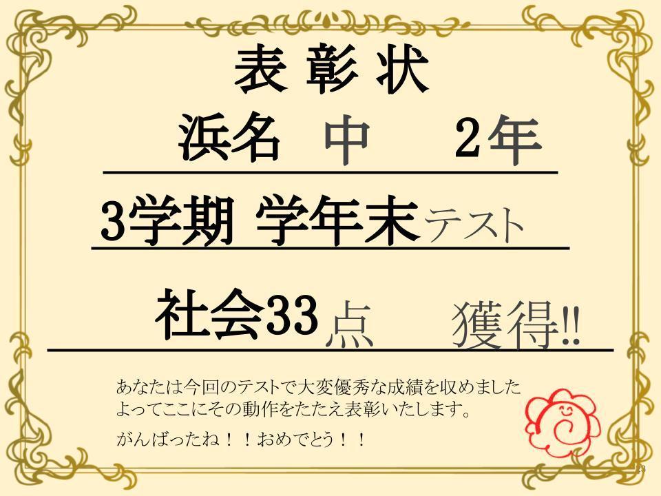 なんと 社会33点!!(※50点満点)