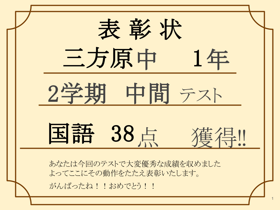 なんと2学期 中間テスト 国語 38 点!!(※50点満点)