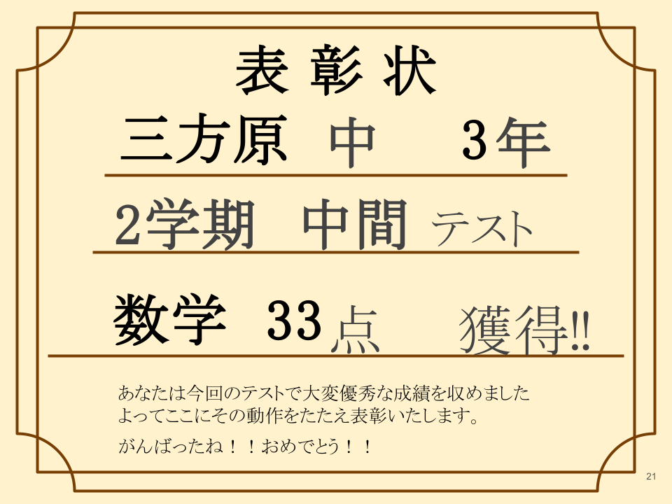 なんと2学期 中間テスト 中間テスト 数学33点!!(※50点満点)