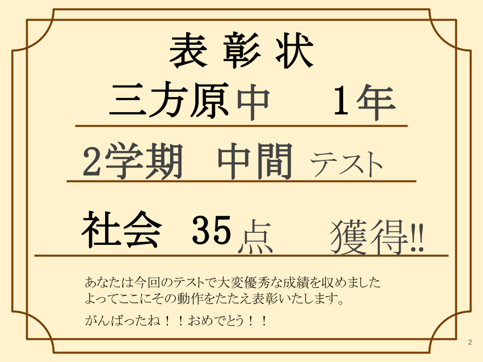 なんと2学期 中間テスト 社会35点!!(※50点満点)