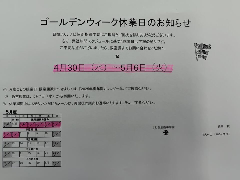 日頃より、ナビ個別指導学院にご理解とご協力を賜りありがとうございます。