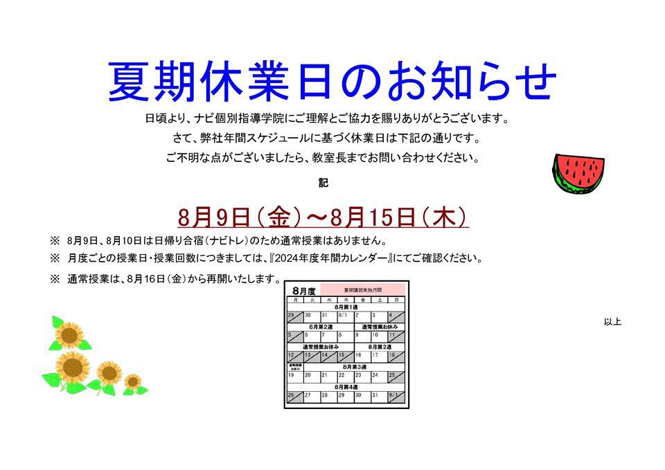 夏期休業のため、塾はお休みです。