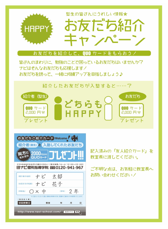 双方に2000円のQUOカードpayをプレゼント(*'▽')