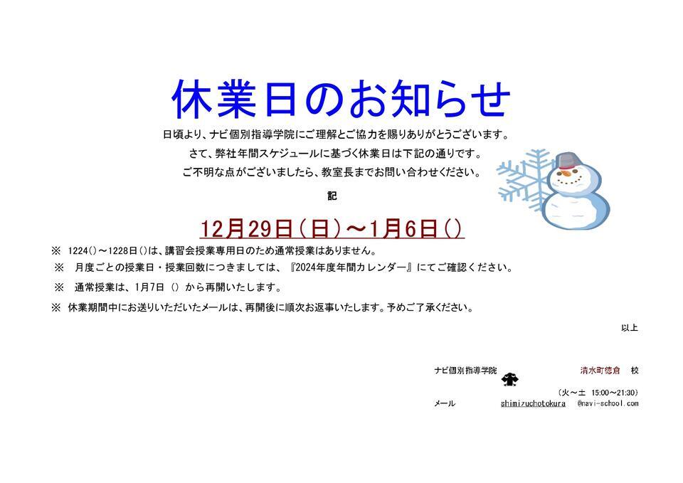 なお、お休み中に頂きましたお問い合わせはお休み明け以降、1/