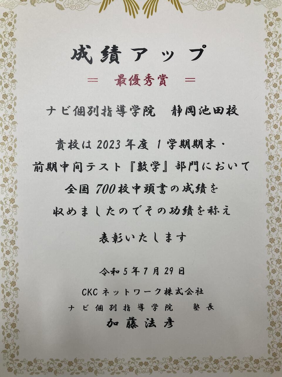 静岡池田校は、全国でも屈指の成績アップ校です!