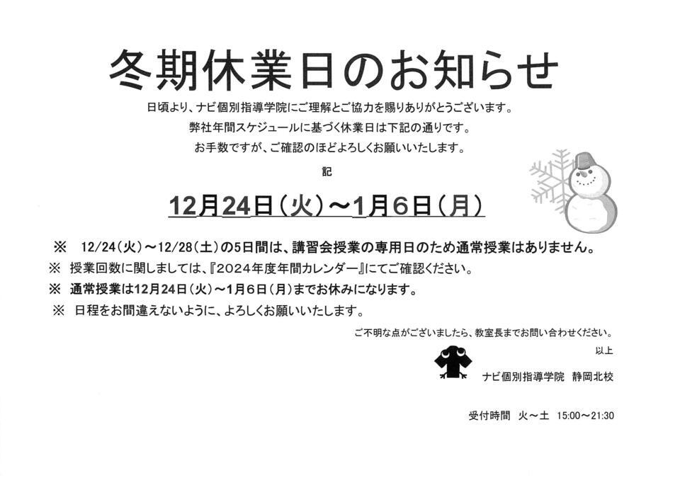 いつもナビ個別指導学院 静岡北校をご利用いただきまして、誠にありがとうございます。