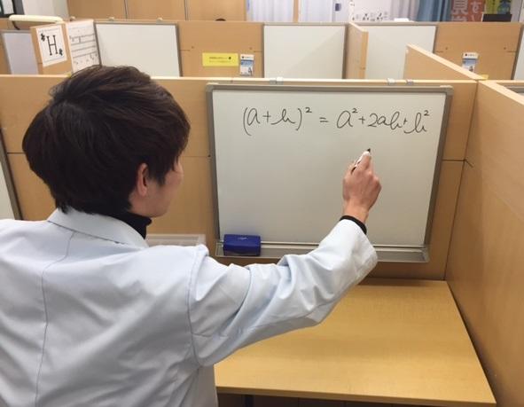 ナビ個別指導学院の授業は、個別の席ごとに設置された自分専用のホワイトボードで解き方や考え方を一緒に確認、それから生徒が問題を解くという「個別授業」スタイルです。