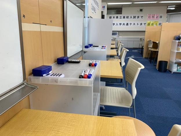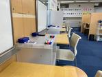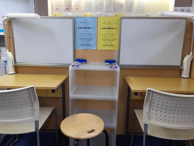 ナビ個別指導学院の授業は、個別の席ごとに設置された自分専用のホワイトボードで解き方や考え方を一緒に確認、それから生徒が問題を解くという「個別授業」スタイルです。