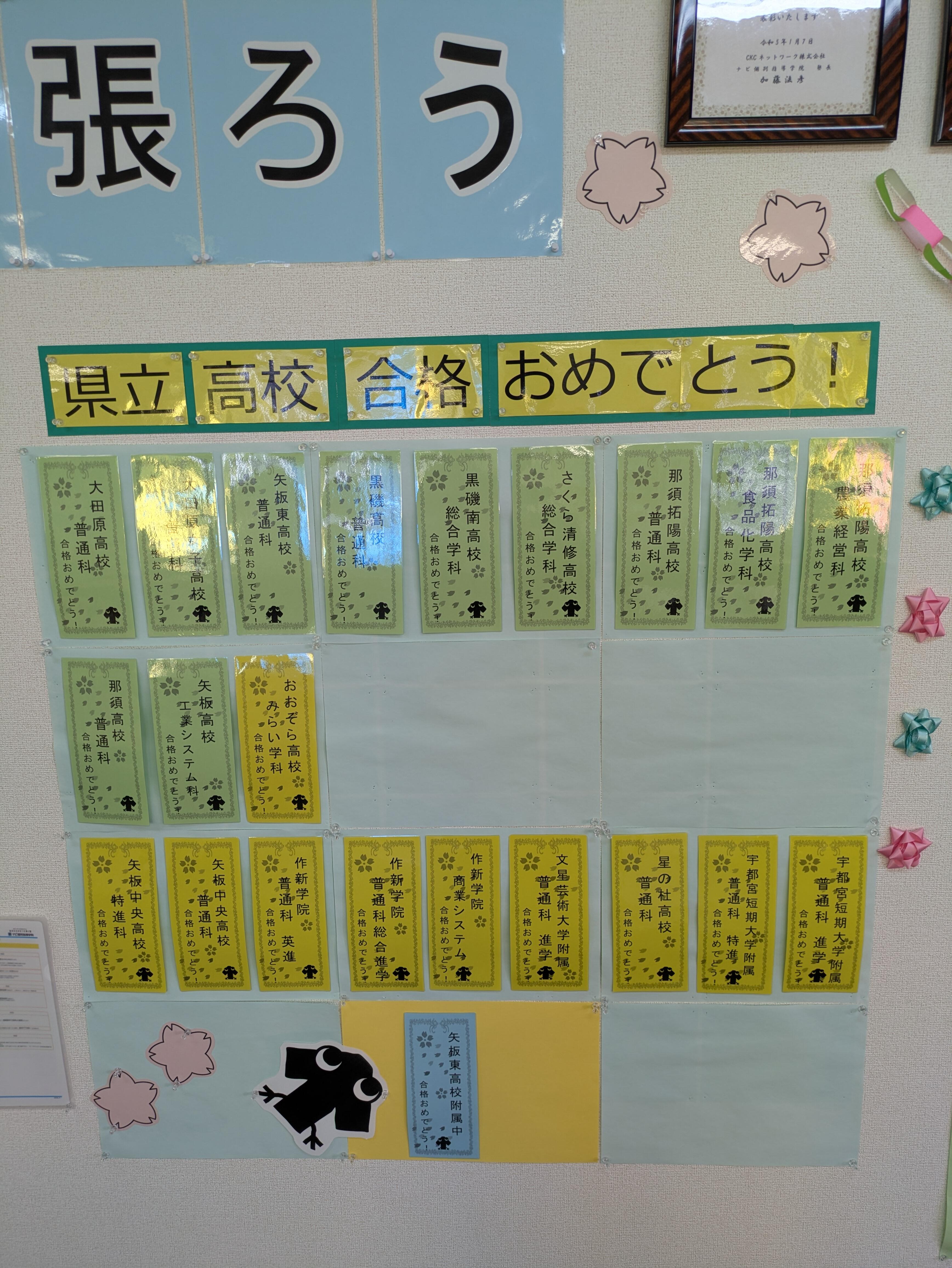 宇都宮の高校を受験した生徒は残念な結果でしたが、その他は全員合格いたしました。